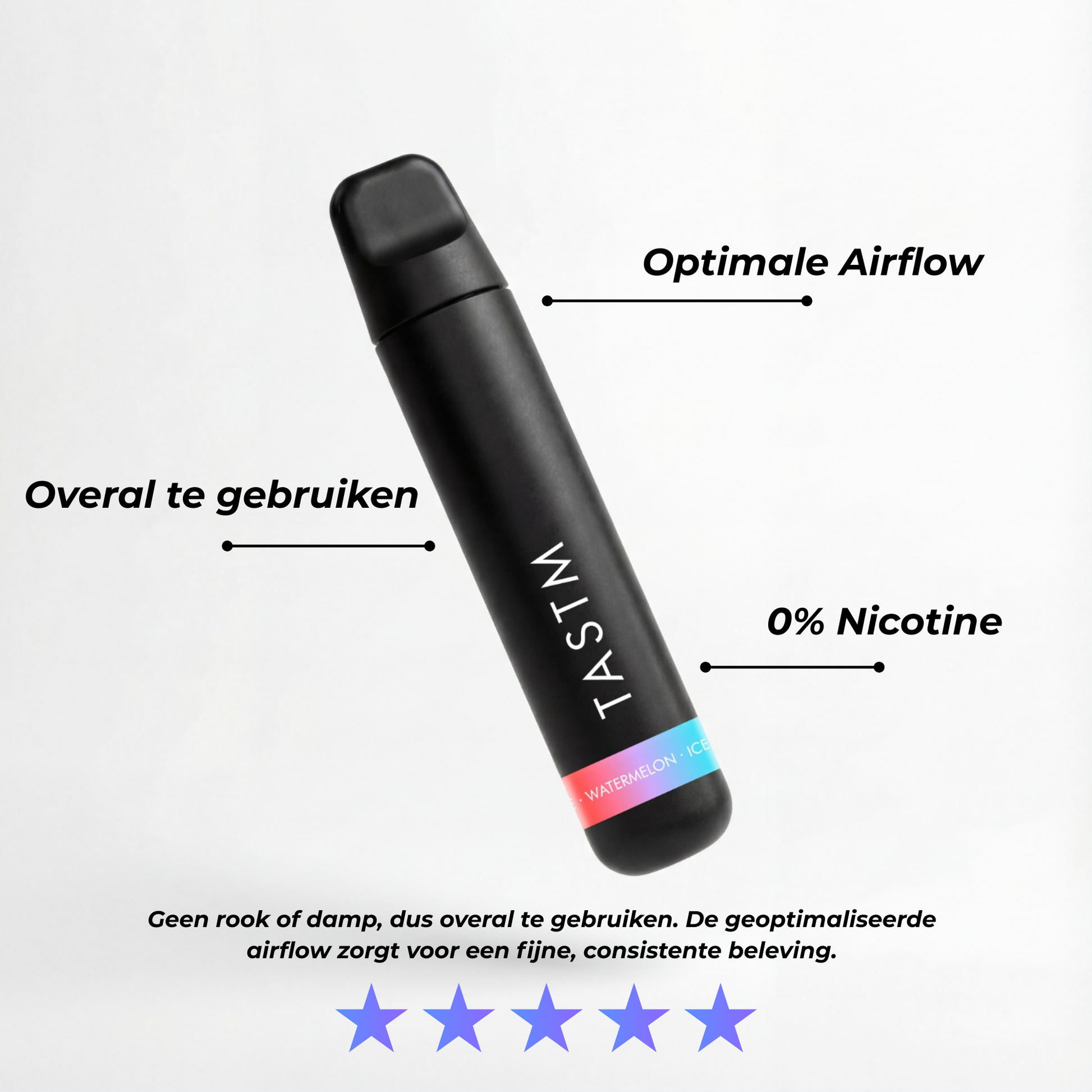 Ja, TASTM bevat 0% nicotine. Je kunt genieten van de aroma’s zonder verslavende stoffen, volledig clean en veilig.